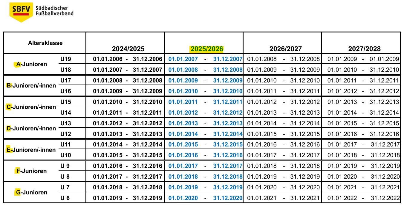 Jahrgänge der Fußball-Jugend